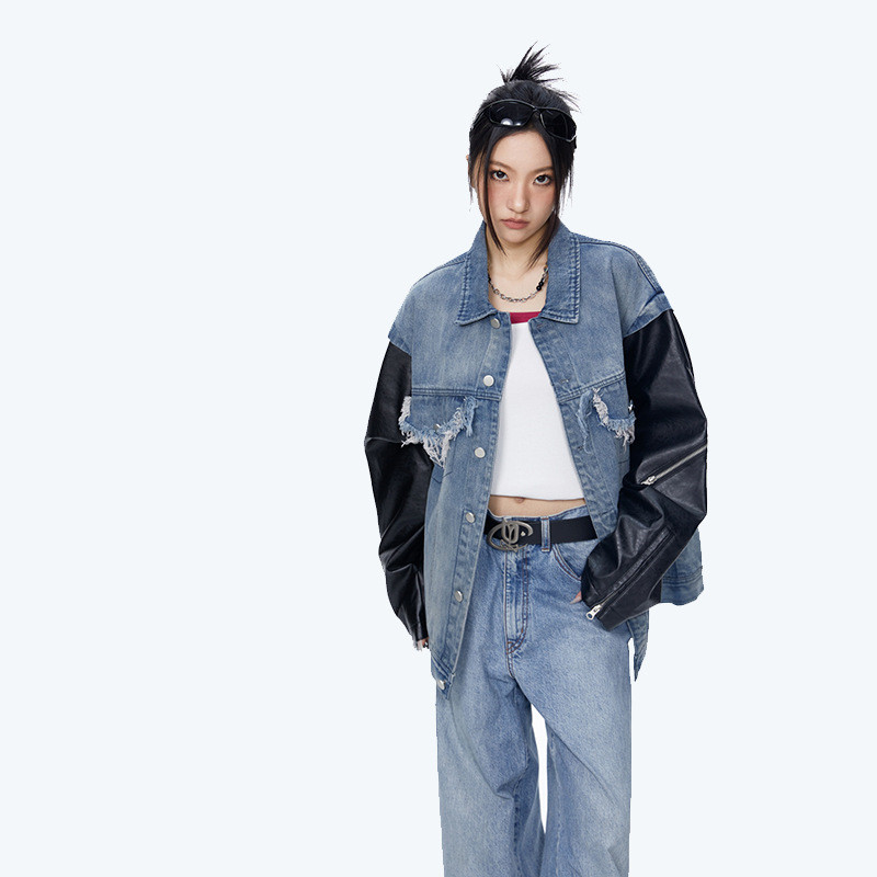 Stay warm and stylish this autumn and winter with our plush denim stitching jacket! t's perfect for layering over your favourite inner or shirts.